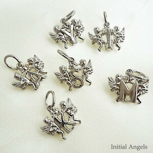 イニシャル エンジェル アルファベット 天使 シルバー チャーム イギリス製 アクセサリー パーツ ネックレス ピアス ブレスレット 銀 925 かわいい ギフト プレゼント 贈り物 メール便OK