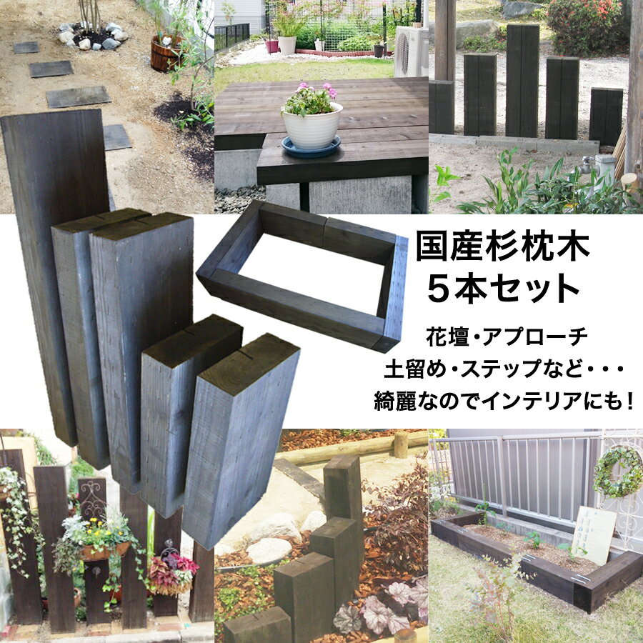 白アリ対策済☆【杉枕木/5本セット】厚約100mm【防腐防蟻処理済】チョコレート色【枕木/セット/アプローチ/花壇/土留め/縁石/菜園/防腐/国産/枠/ステップ】