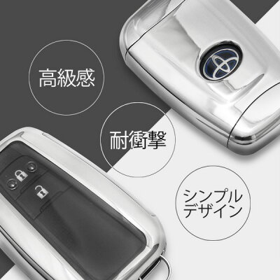 トヨタ スマートキーケース キー カバー シルバー キーホルダー ストラップ付 C-HR プリウス50系 RAV4 カローラスポーツ CHR TOYOTA