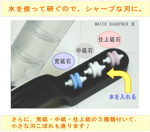 くわしくはこちら■水研ぎで良い刃が付きます!ウォーターシャープ3 研ぎ器 ■・・・どなたでも、力いらずで、良く切れるようになります。